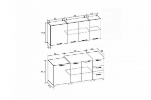 Высота верхних шкафов (мм) 685