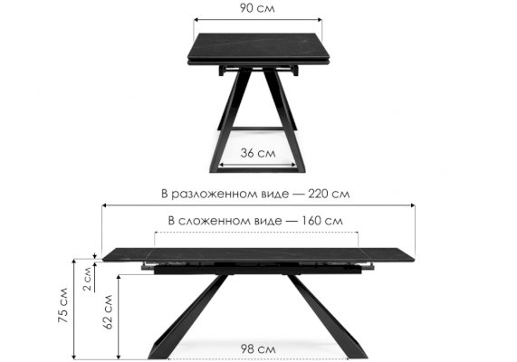 Длина в разложенном виде: 2200 мм